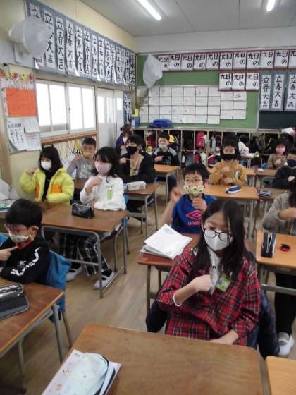 「六年生を送る会」に向けて、手話の練習をしています。コロナのせいでリコーダーも演奏できない、歌も歌えない中、子どもたちは心を込めて手話の練習に頑張っています。