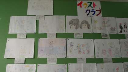 イラストクラブは手書きのイラストを展示していました。アニメや漫画を参考に作品作りをした子もいれば、自分のオリジナルにこだわって描いた子もいます。プロを目指すかと思われるような子もいます。なかなかの腕前です。