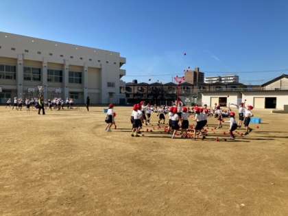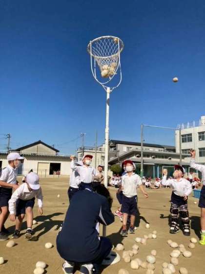 今日1年生は玉入れをしました。今年度は運動発表会ということで団体競技は実施しませんでしたが、学年の合同体育で実施しました。