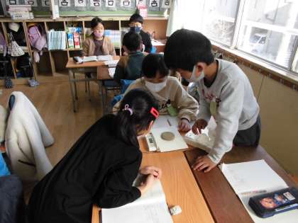 理科で粘土の形を変えて、重さを測る実験をしました。子どもたちは、丸い形、平べったい形、細長い形などいろいろな形に粘土を成型して重さを測っていました。