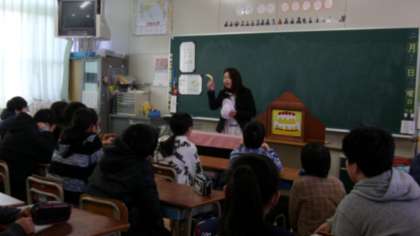 墨江丘中学校から英語の先生が来てくださって、英語の授業を体験しました。