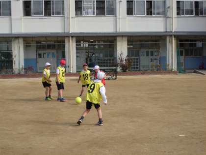 三学期に入って体育でサッカーの練習に取り組んできました。今日は、試合をしました。