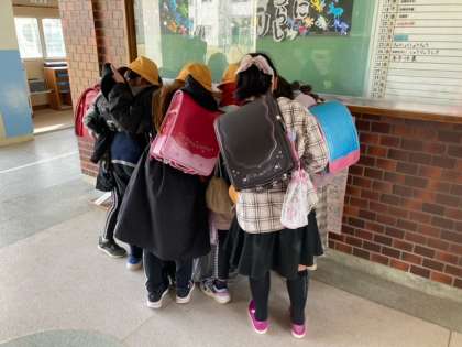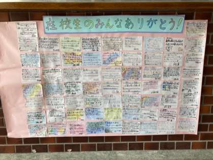 先日の6年生を送る会でお祝いをしていただいた6年生。その感謝の気持ちを玄関で表しています。1〜5年生の皆さん、ありがとうございました。残りわずかの小学校生活も楽しみたいと思います。
