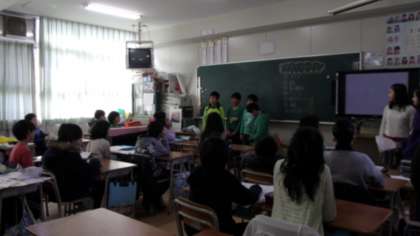 5年生は「調べたことを発表しよう」ということで、環境学習のまとめとして、グループ毎に発表しました。ニュース風や劇風など、わかりやすいように工夫して発表しているのがよかったです。