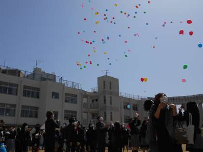 式後、6年生の卒業を記念してPTAによるバルーンリリースを行いました。