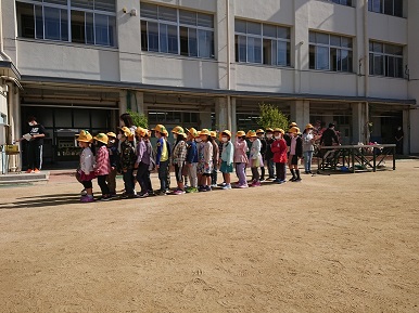 2〜6年生は1年生を拍手と笑顔で迎え、