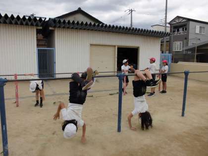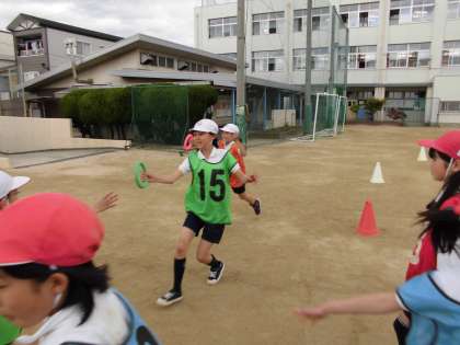 今日の体育は、鉄棒とリレーとソフトボール投げの練習をしました。