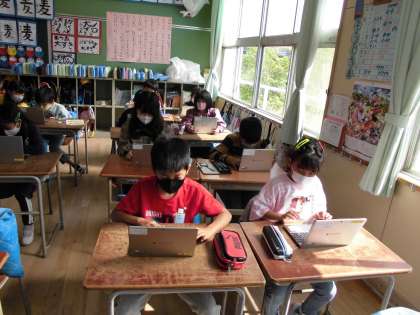 一人一人に支給されているパソコンを使ってログインし、スクールノートの使い方を練習しました。