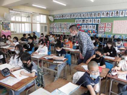 マックス先生とノリノリで英語活動を楽しみました。好きなものを英語で聞きました。