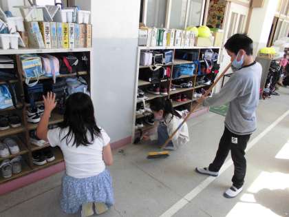 緊急事態宣言下ですが、毎日自分たちの学校をきれいにするために掃除を頑張っています。