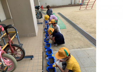 植え終わって、水やりをしながら、「芽はいつでるんかな〜」と子どもたちのつぶやく声にほっこりしました。