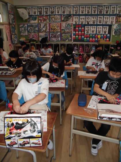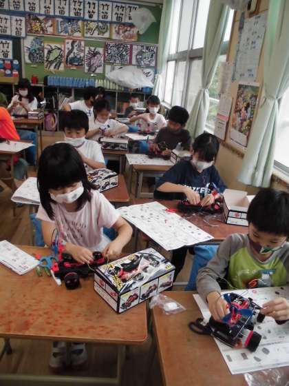 理科の実験で直列つなぎと並列つなぎでプロペラの回る速さの違いを調べました。