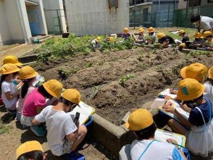 サツマイモのつるが少しずつ伸びてきました。今はあまり変化はありませんが、これからどんどん、どんどんつるが伸びていきます。その過程を今後も一緒に観察していきたいです。