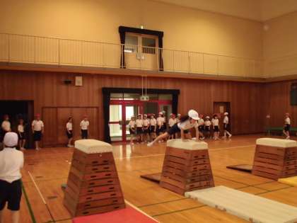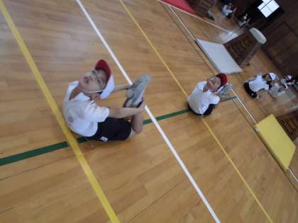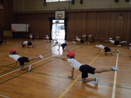 体幹を鍛えるために体育の授業の時間にいろいろな体幹を鍛える運動に取り組んでいます。
