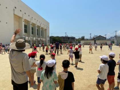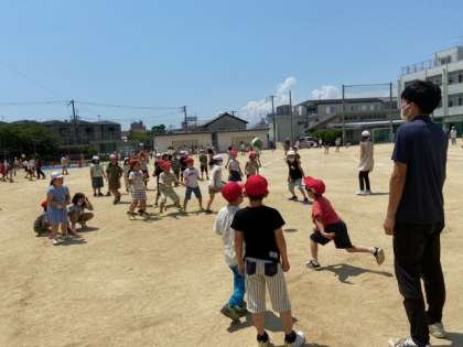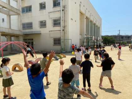 お昼休み、運動場でボール遊びをしました。みんなで遊ぶと楽しいね。