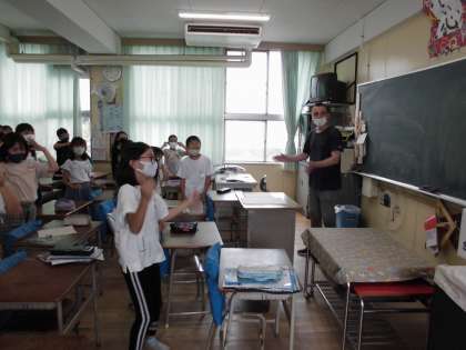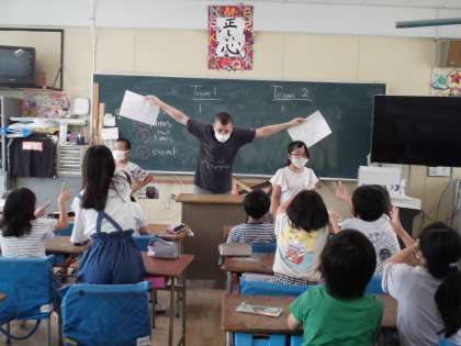 4月からマックス先生に教えていただいて子どもたちは、ノリノリで一学期最後の英語の授業を楽しんでいました。