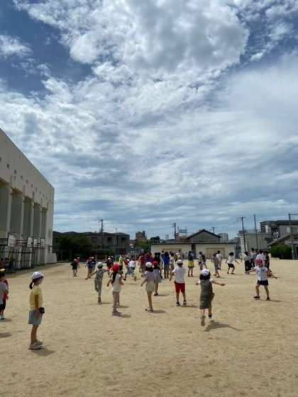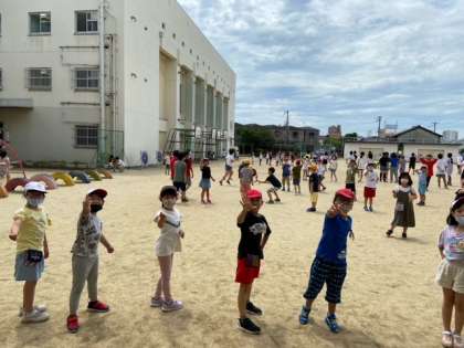 じゃんけんポン。「グリコ!」「チヨコレイト!」「パイナツプル。わーい」。と言いながら、鉄棒までじゃんけんして進んでいきました。楽しかったね。