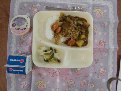 二学期最初の給食は、「ビーフカレーライス」でした。おいしくいただきました。