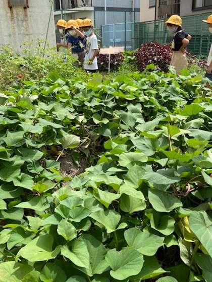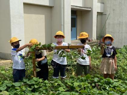 さつまいものつるが、ぐんぐん伸びていました。1mさしではかってみると、2mをこしていました。すごーい!(^^)!おいしいお芋ができますように。