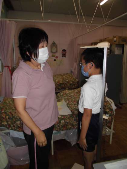 夏休みが明けて2学期初めての身体測定を行いました。保健室の先生にコロナについてのお話をしていただき改めて気を引き締めました。