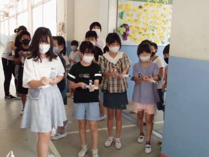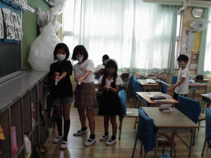 空気てっぽうでスポンジの玉が飛ぶ活動をしました。