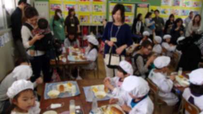 「手ぇとまってる!!」と、いつも家で注意している様子がそのまま出ておられたお母さんや「へぇ〜、グリーンピース食べれんねや〜。」と新たな発見をされているお母さんもおられました。子どもたちの横にお母さんがついてオレンジの皮をむいてあげるなどの様子も見られ、とてもアットホームな雰囲気でした。