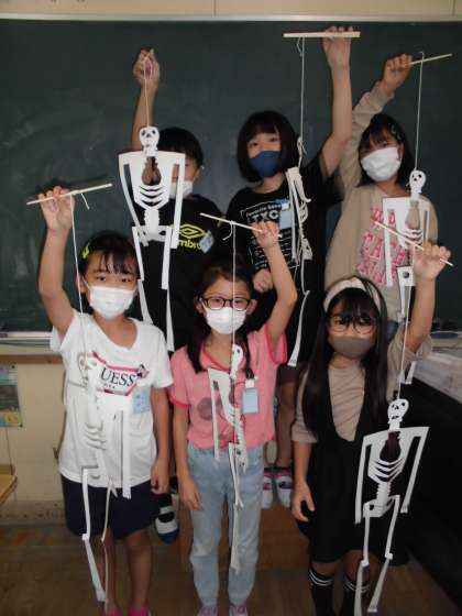 理科で骨と筋肉の学習をしています。骨の作りを学習するために骸骨を作りました。