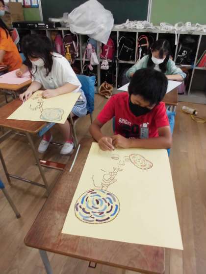 前回の続きでシャボン玉を吹くストローとそれを持っている自分の手を描きました。