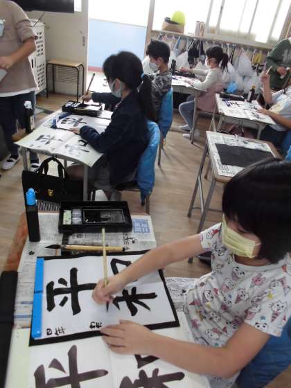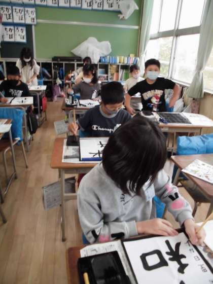「平和」と書きました。毎週、書写の練習をしているのでみんな少しづつ上手になってきています。