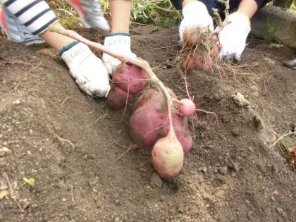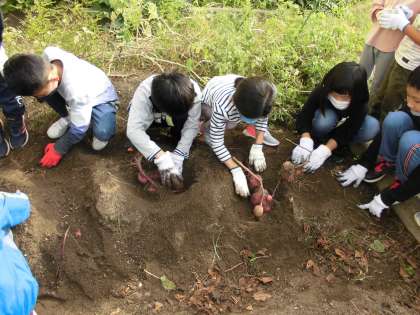 先週、待ちに待った「さつまいも掘り」をしました。「大きいお芋ができているかな?」とわくわくして学習園へ行きました。順番に交代しながら土を掘っていくと( ^ω^)・・・大きいお芋が顔を出し、大喜びでした。