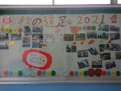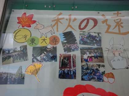 秋の遠足の楽しい雰囲気が伝われば…、との思いで、作製してくださいました。かわいい、観て楽しい広報版が出来上がっています。素敵な広報版を、ありがとうございます。1・2年生の遠足が終われば、完全完成版になると思います。楽しみです。