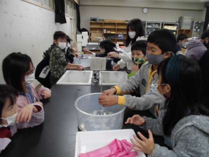 空気や水をあたためると体積がどうなるかの実験をしました。
