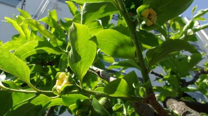 正門を入って左手に数々の木がありますが、その中の一つに梅の木と柿の木があります。梅は、大きな実をつけだしました。柿は花が咲きましたので、そろそろ実になってくると思います。来校の際に、ぜひご覧ください。