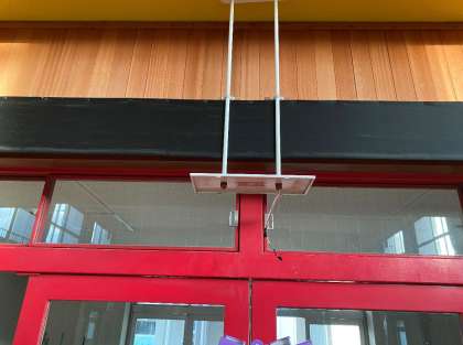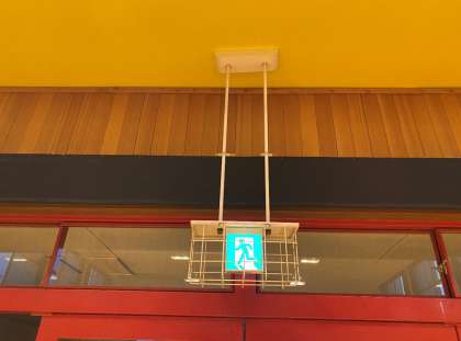 体育館の誘導灯が古く、調査の結果、点灯していないものもありましたので、取り替えを行いました。