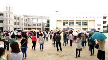 本日は、第1回目の土曜授業で保護者引取り訓練を行いました。天気が悪く、足元の悪い中でしたがたくさんの保護者の方が参加してくださいました。ご協力いただいたおかげでスムーズに実施することができました。ありがとうございました。