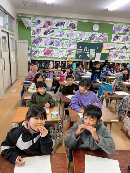 みんなで「いただきまーす❤」「おいし〜!」「あまっ!」自分たちで育てたお芋。みんなで掘り、絵をかいて、甘くな〜れ!と、時間をおいて甘くなるまで待っていました。「ああ、おいしかった。」「ごちそうさまでした。」「おいもさん、ありがとう。」
