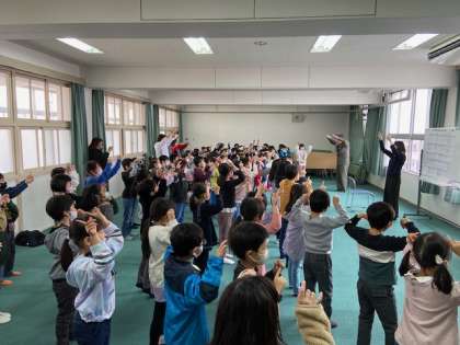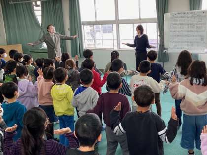「手のひらを太陽に」の歌の手話を教えていただきました。手話の身振りや手の動きをよく見て、上手にまねをすることができたので、何度も「すごく集中して、よく見てくれてすごい!!」とほめていただきました。「おはよう」の手話は、枕をとる感じ、と説明もしてもらいました。今日の学習で、いろんな人がいるけれど、優しい心で助け合ってほしいという思いをしっかり学習することができました。