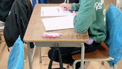 自分の苦手な分野を発見して克服の足がかりにしたり、自分の得意分野を伸ばしたり、テストの結果を有効に使うためのものです。みんな、丁寧な字で、真剣に問題に向き合っています。