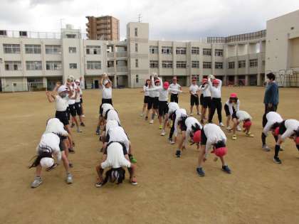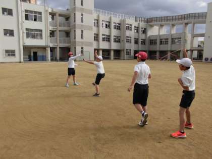 寒空の下、体育をしました。持久走、大縄跳び、サッカーと子どもたちは、元気よく活動していました。