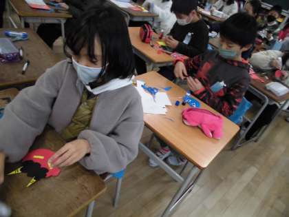 「おには、外!」節分にちなんで、追い出したい心の鬼を節分の豆に書きました。
