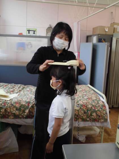 新学年になって、初めての身体測定です。身長と体重を保健室で測ってもらいました。