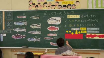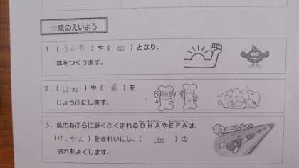 魚を食べるとこんなにいいことがあるのかと子どもたちは一生懸命話を聞いていました。これからもたくさん魚を食べて、たくさん魚パワーをもらってくださいね。