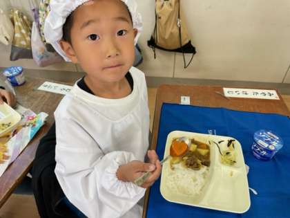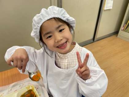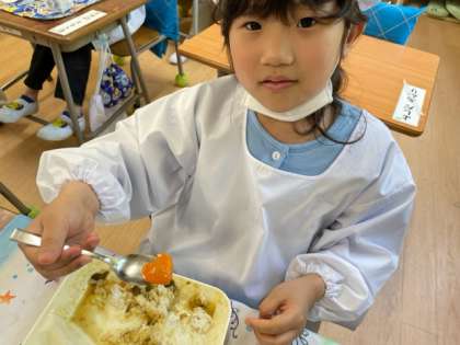 今日のカレーには、ハートの形をしたにんじんが入っていました。入っていた人はラッキー!嬉しそうな顔をしていました。