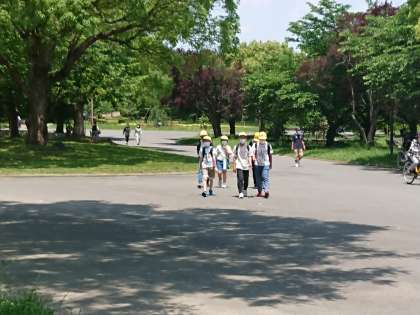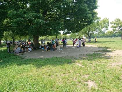 鶴見緑地公園に着き、さっそくオリエンテーリングをしました。