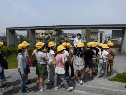 区役所の屋上のお庭も見せていただきました。住吉区の紹介のビデオも見せていただきました。すみちゃんも出てきてくれました。