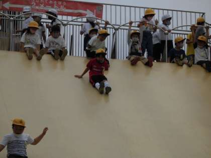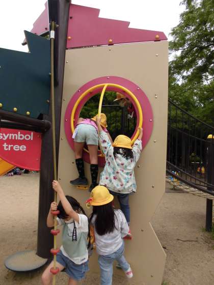 大きな滑り台やアスレチックなどたくさんの遊具で遊びました。