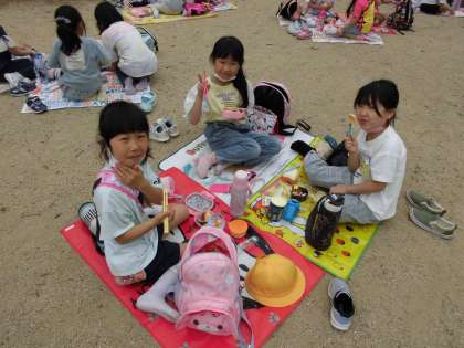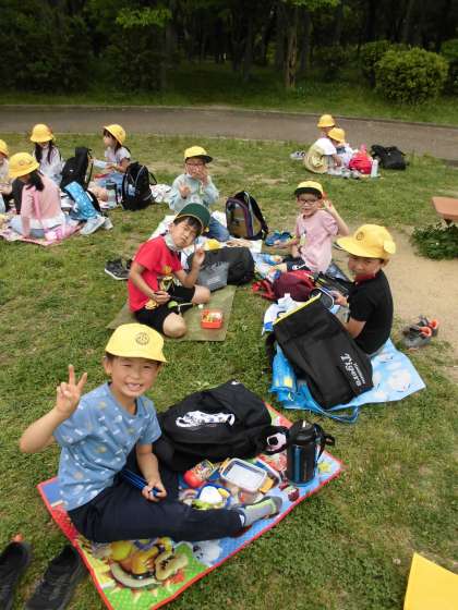 「おべんとうおいしい」「おべんとうさんだんやー。」楽しいお弁当の時間でした。