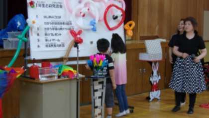 今日の2時間目は、1年生と2年生の交流会でした。はじめに自己紹介をした後、会の雰囲気を盛り上げるために、先生がマジックをしてくれました。1つ1つのマジックに子どもたちも真剣に見入ったり、驚きの表情を見せたり、拍手をしたりとくぎ付けでした。中でも、みんながいちばん驚いていちばん喜んだマジックは・・・・・絵に描いたザリガニを筒に入れると、なんと!本物のザリガニが出てくるではありませんか。左の写真は、ザリガニの絵を描いているところです。マジックで盛り上がった後、お互いの学年から歌のプレゼントがありました。2年生からは、英語と手拍子をいれた「子犬のビンゴ」という歌が贈られました。