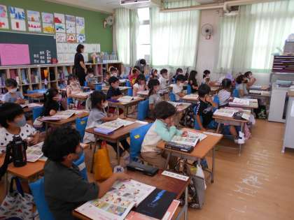 挿絵を見ながら、一生懸命に考えていて、様々な意見か飛び交っていました。