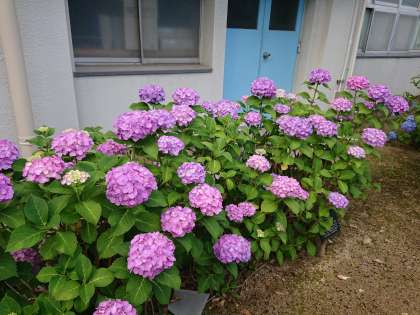 6月になりました。校内の紫陽花もきれいな花を咲かせています。